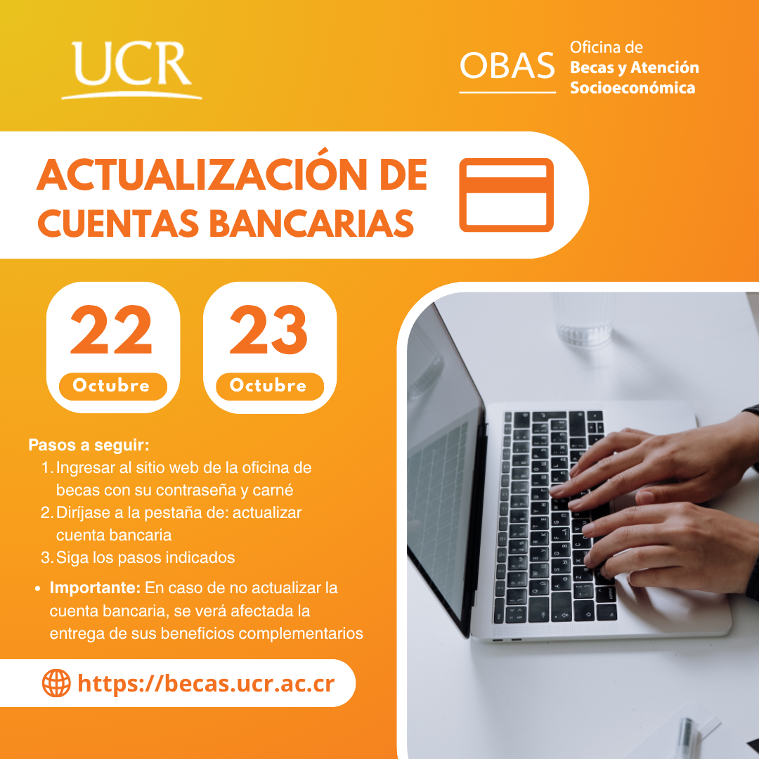 Para esto, deben ingresar con el carné y la contraseña en el sitio web de la oficina de becas y atención socioeconómica y dirigirse a la pestaña de «actualizar cuenta bancaria» y seguir las instrucciones que se indican.