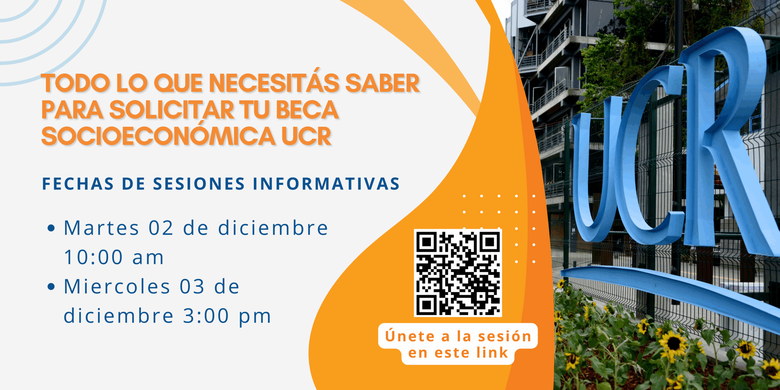 La Oficina de Becas y Atención Socioeconómica invita a todas las personas elegibles, así como a la comunidad estudiantil en general, a participar en las sesiones informativas sobre el proceso de solicitud de beca para el I ciclo lectivo 2026. En estas sesiones se brindará información general del proceso y se ofrecerá un espacio para atender consultas.