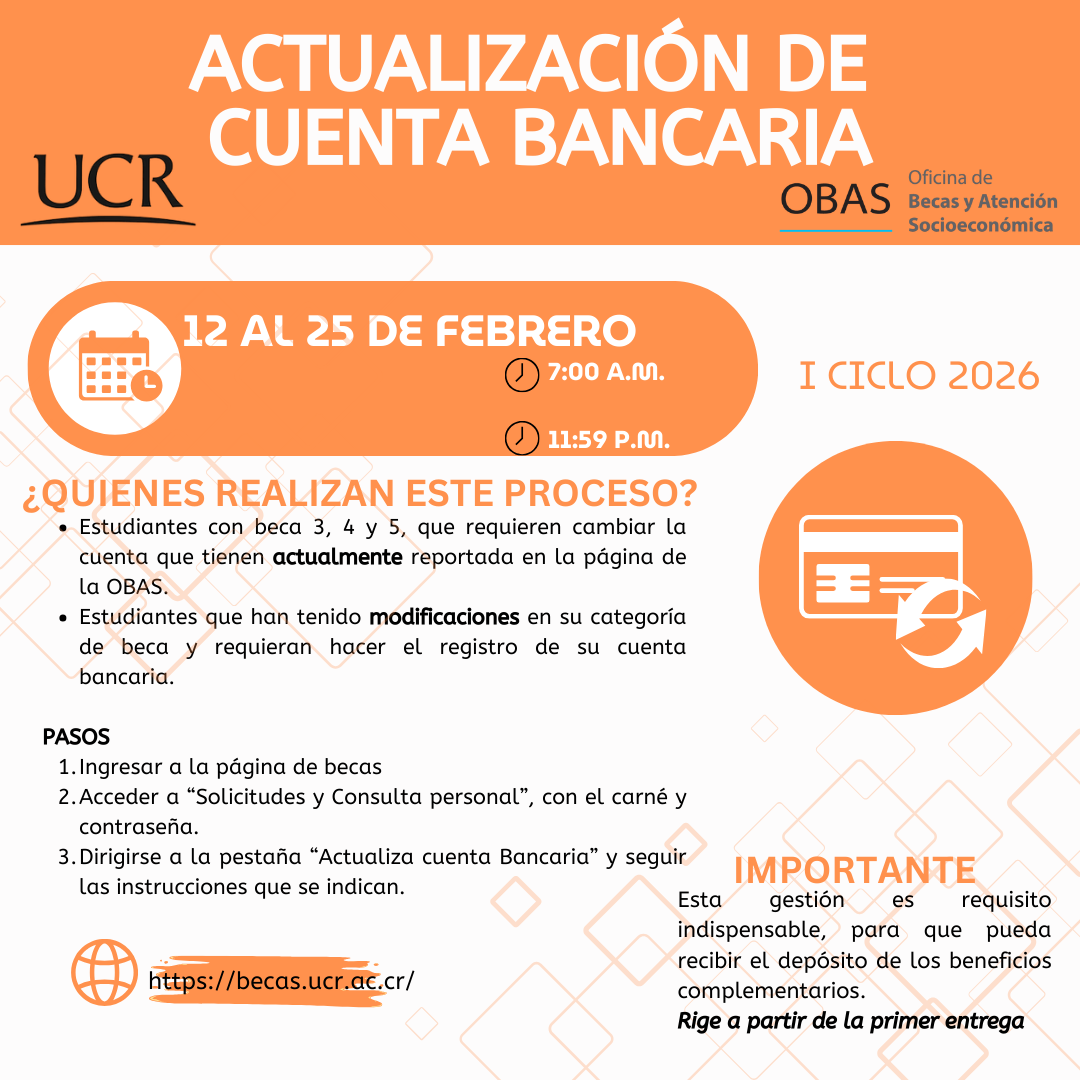 - Sede Rodrigo Facio: becas@ucr.ac.cr